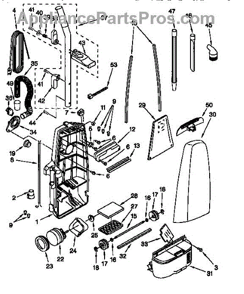 Parts for Kenmore 116.37211793 (11637211793, 116 37211793): Dust Compartment And Motor Parts