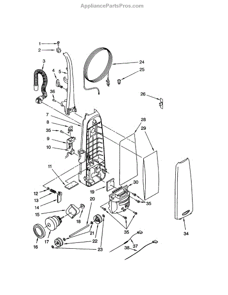 Parts for Kenmore 116.38099890 (11638099890, 116 38099890): Dust Compartment And Motor Parts