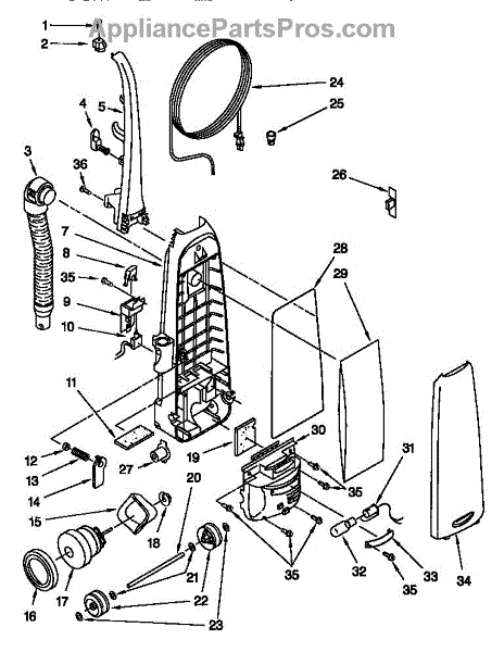 Parts for Kenmore 116.38139890 (11638139890, 116 38139890): Dust Compartment And Motor Parts