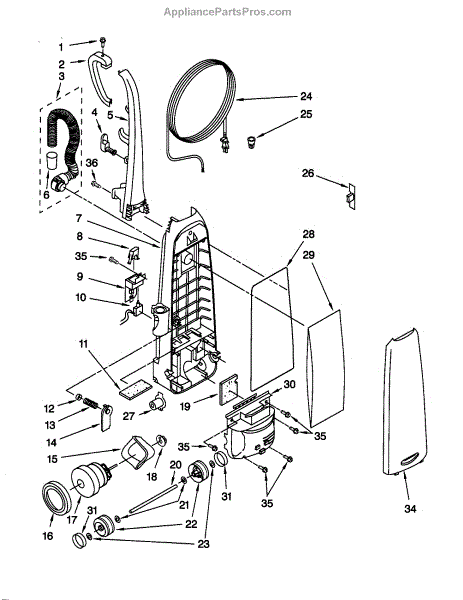 Parts for Kenmore 116.38189891 (11638189891, 116 38189891): Dust Compartment And Motor Parts