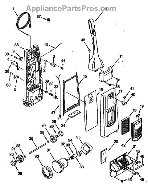 Parts for Kenmore 116.38512890 (11638512890, 116 38512890): Dust Compartment And Motor Parts