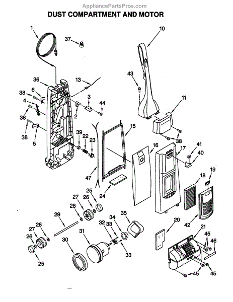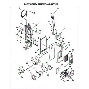 Parts for Kenmore 116.38612892 (11638612892, 116 38612892): Dust Compartment And Motor Parts