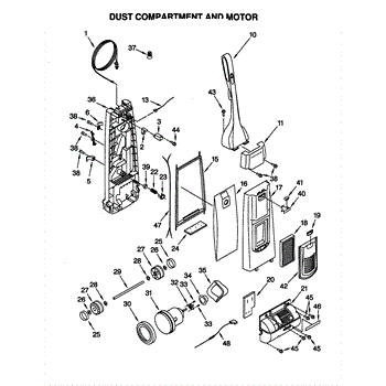 Parts for Kenmore 116.38812892 (11638812892, 116 38812892): Dust Compartment And Motor Parts