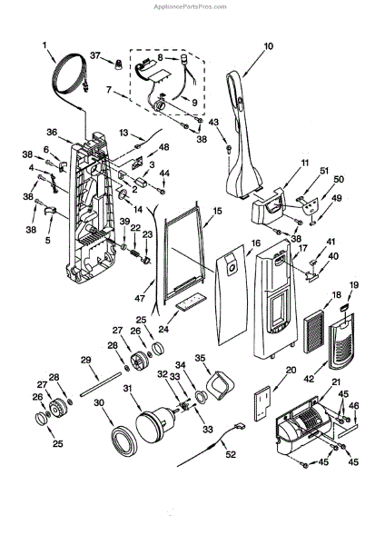 Parts for Kenmore 116.38912891 (11638912891, 116 38912891): Dust Compartment And Motor Parts
