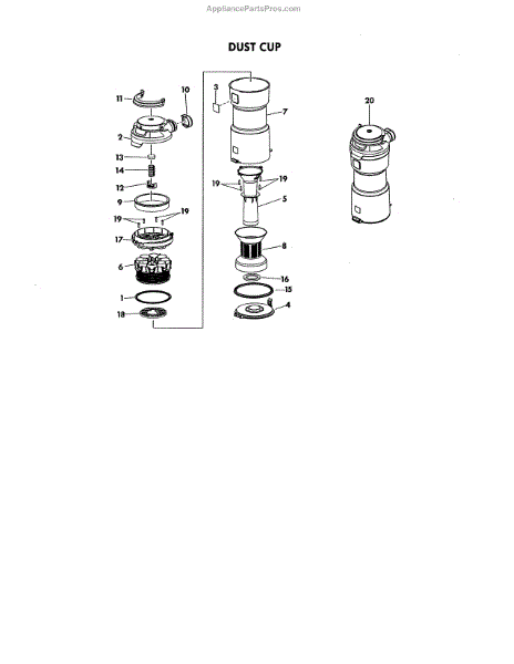 Parts for Kenmore 125.31230610 (12531230610, 125 31230610): Dust Cup Parts