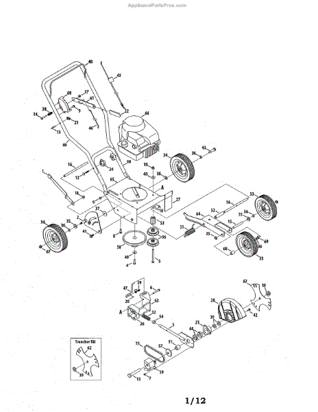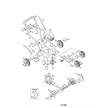 This is the front wheel assembly that is used by a large number of manufactures as the standard wheel for push mowers. This wheel is a tough, black rubber wheel fitted onto a sturdy white chassis. Since it is not a pneumatic wheel, there is no concern that it will roll over hidden debris and be damaged. Push wheels such as these often last the lifetime of a Lawn Mower. However, there are occasions when the housing of the mower is dropped and the wheel becomes warped or broken. It's also the case that, with constant use, the wheels can lose tread, making them harder to maneuver in tough mowing conditions. It has also been reported that the tires will wear and become smaller in circumference over time, meaning it will require more gasoline to mow the same amount of yard. The front wheels are easily replaced. After removing the plug cap and stabilizing the mower, simply use a socket wrench to remove the center bolt from the wheel. It's a good idea to use a dry lubricant like graphite on the axle before replacing it. This OEM guaranteed replacement part is compatible with Ryobi, Yard Machines, Troy-Bilt, Cub Cadet, Husky, Yard-Man, and MTD push mowers.