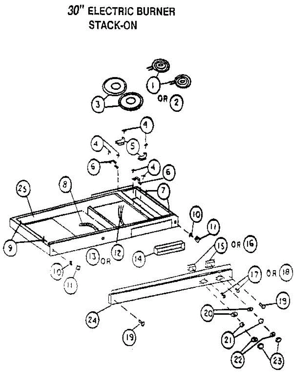Parts for Davis DEB30SB: 30" Electric Burner Stack-On Parts