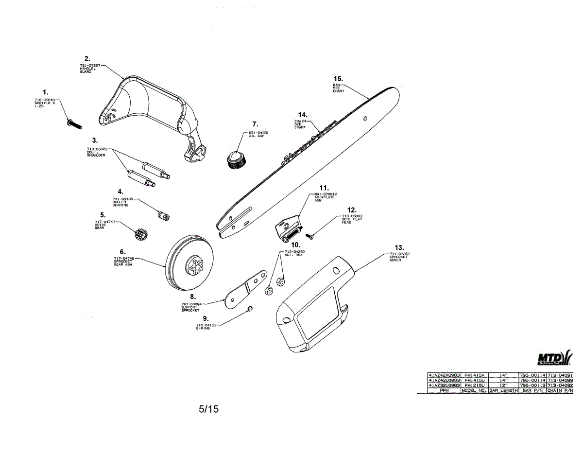 The sprocket/gear assembly is a genuine replacement part that helps drive the chain in select MTD chainsaws. It is located under the engine cover housing and connects to the chain drive to create the motion that rotates the blade. Over time and with constant use, the gear and sprocket can both become worn down or develop issues that cause them to affect the operation of the saw. In this case, the best option is to replace the defective or damaged parts. This sprocket and gear assembly provides an exact fit for compatible equipment since it is an identical part. This genuine OEM replacement part is compatible with dozens of chainsaws and pole saws and is manufactured to exact standards. This durable sprocket and gear are made of premium composite and metal materials and the assembly is sold as a single unit. Allow the engine to cool completely and wear gloves for safety whenever performing any type of engine repairs. The spark plug should also be disconnected before working on the engine for the safe repair of all parts.