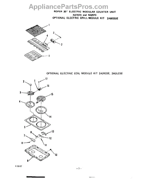 Parts for Roper N3157W0: 03 - Electric Grill Module , Electric Parts
