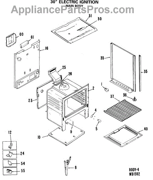 Parts for Ge JGBC17GEJ4: 01 - 30`` Electric Ignition Parts