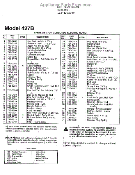 Parts for Mtd 182-427B000: Electric Mower Page 2 Parts