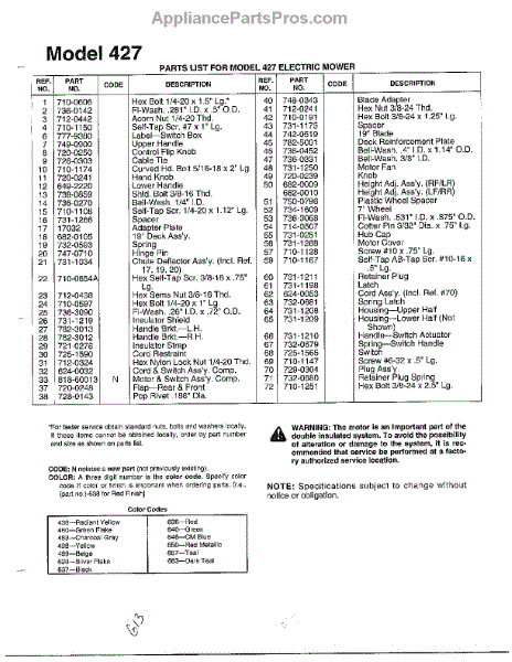 Parts for Mtd 37223: Electric Mower Page 2 Parts