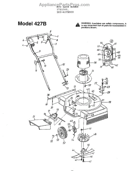 Parts for Mtd 182-427B000: Electric Mower Parts