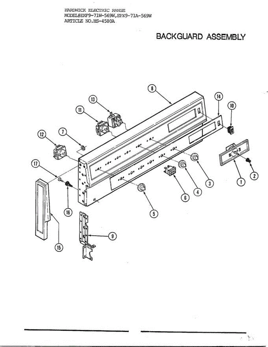 Parts for Hardwick 4580A: Electric Range Backguard Assembly Parts