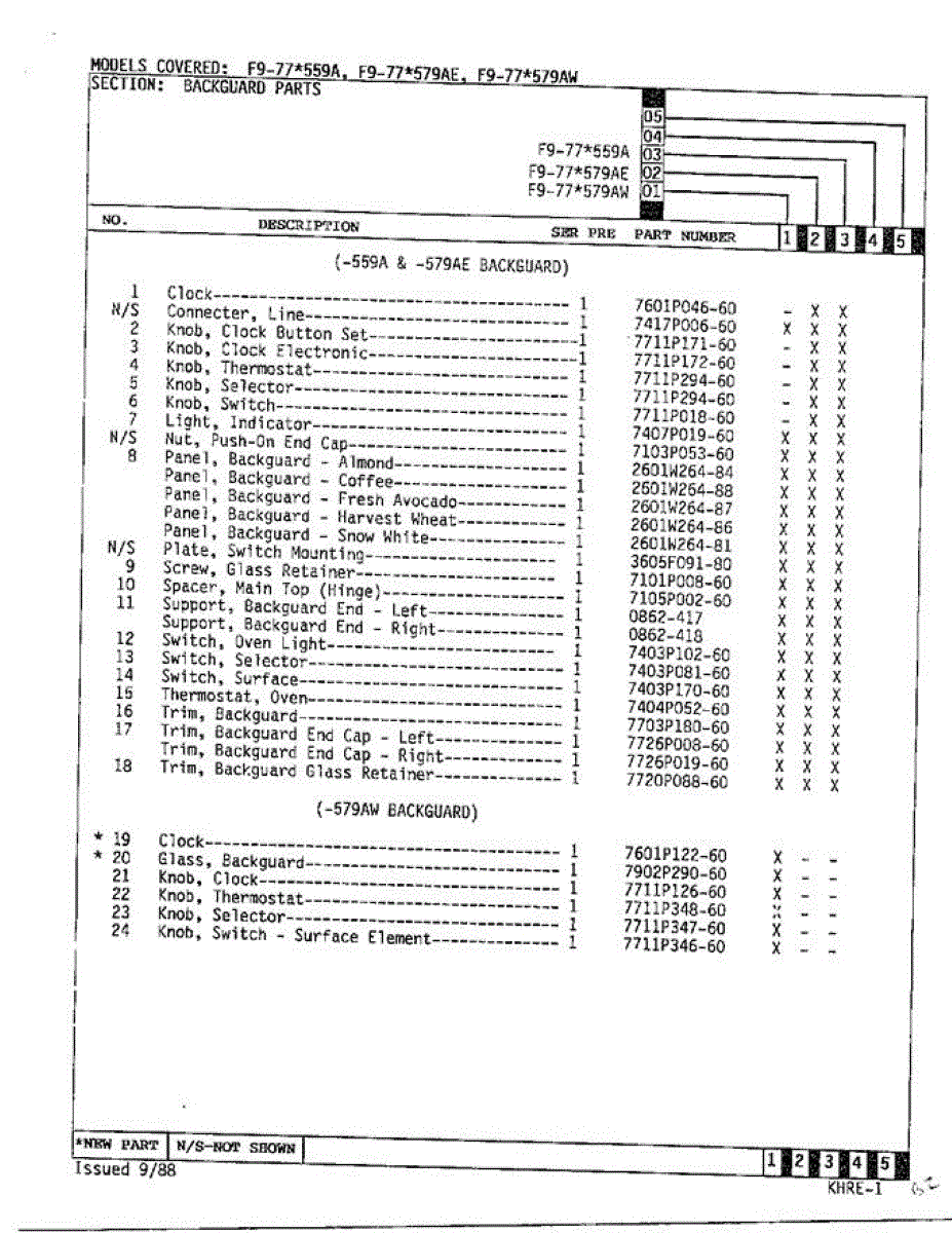 Parts for Hardwick EOF9-77*579AW: Electric Range Backguards Page 2 Parts