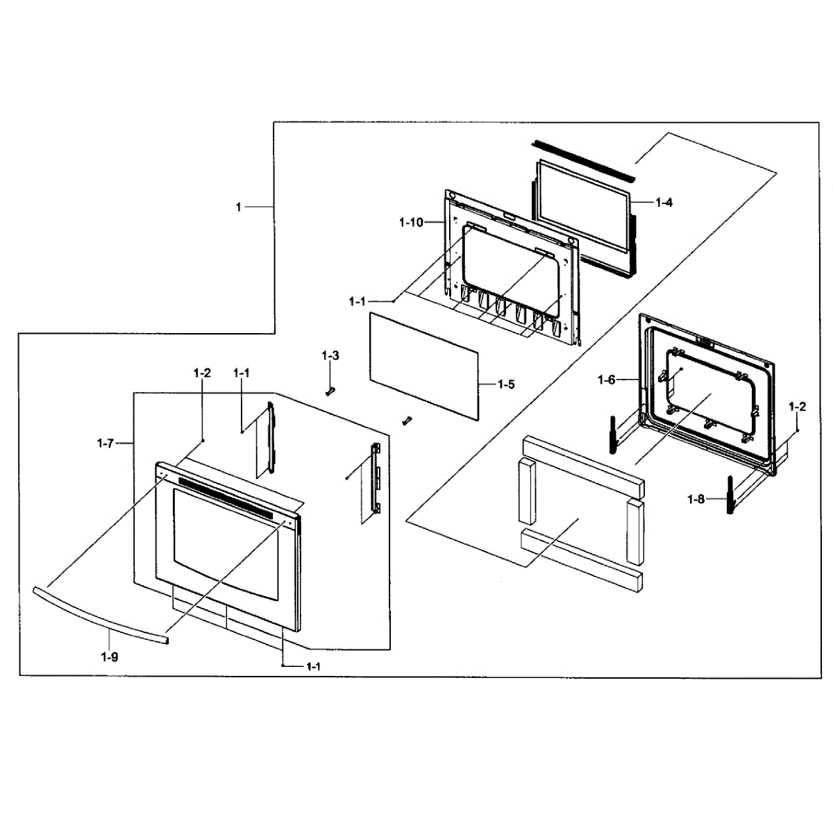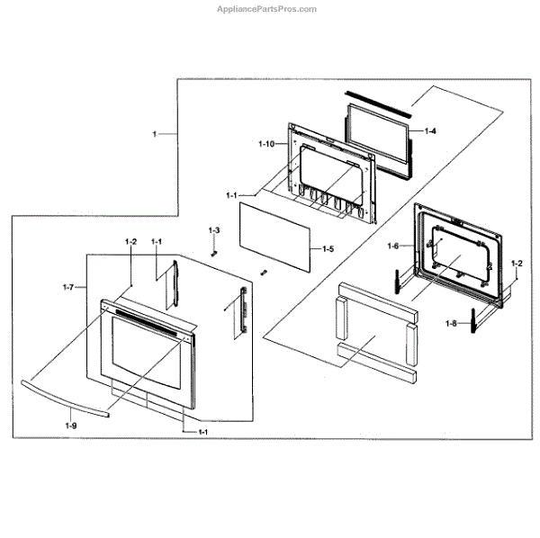 Complete door assembly for electric ranges. Replaces a cracked, shattered, or damaged oven door. Includes outer panel and inner components for full restoration.