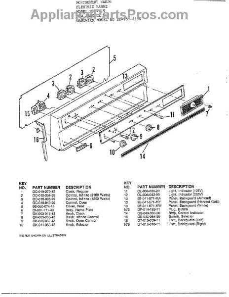 Parts for Hardwick 4519: Electric Range Electric Range Parts