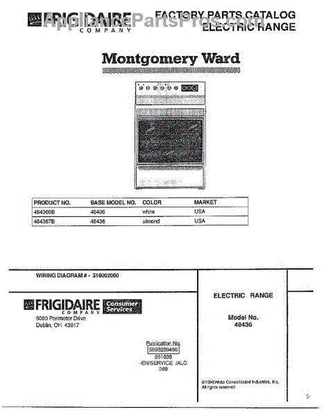Parts for Frigidaire 484367B: Electric Range Front Cover Parts