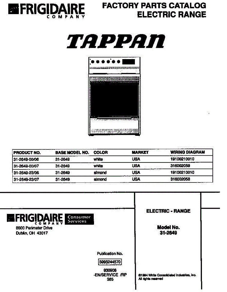 Parts for Frigidaire 31-2649-00-07: 01 - Electric Range Parts