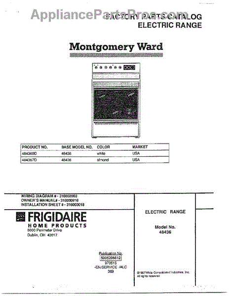 Parts for Frigidaire 484367D: Electric Range Parts