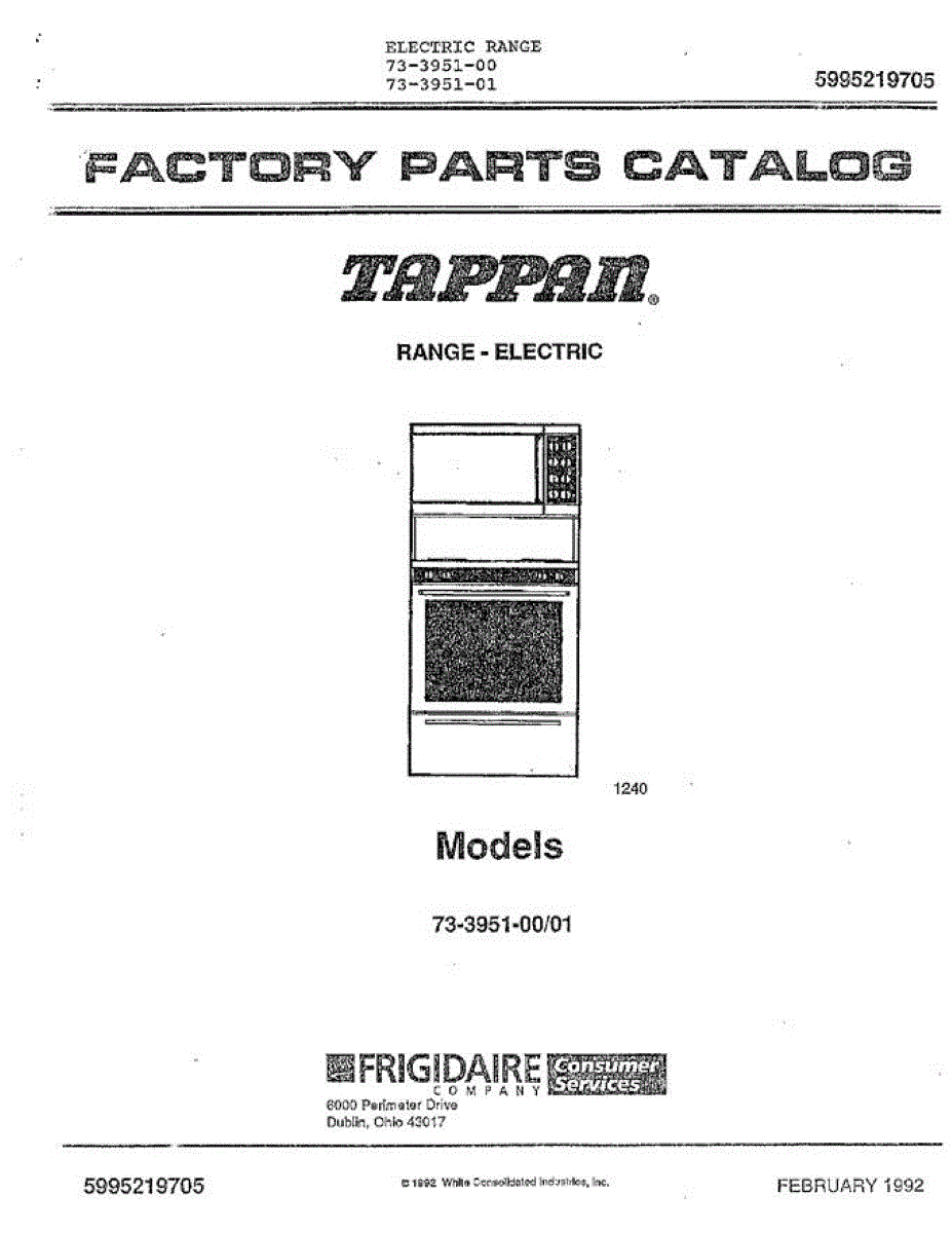 Parts for Tappan 73-3951-01: Electric Range Parts