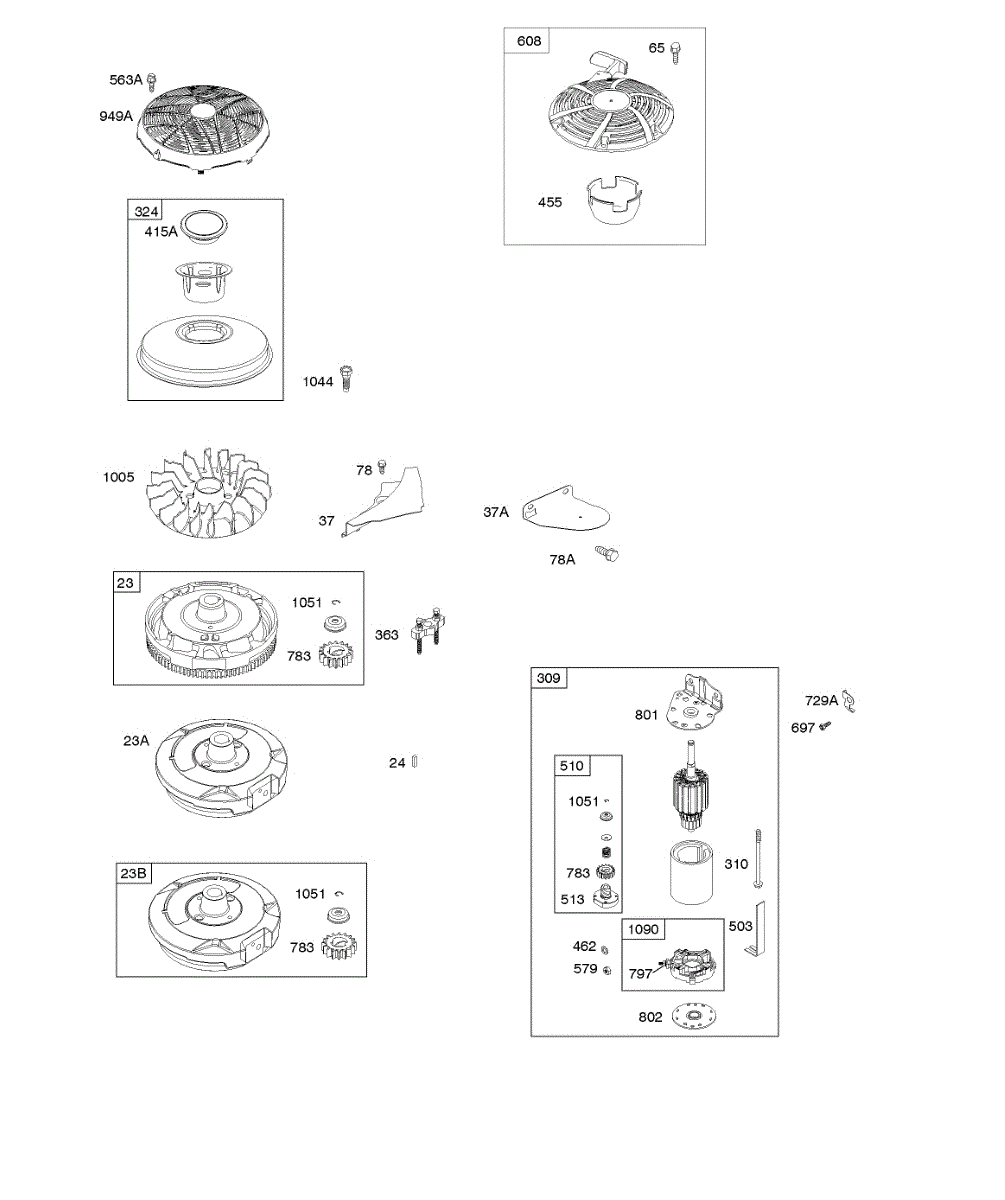 Parts for Briggs & Stratton 21R607-0005-H1: Electric & Rewind Starter, Flywheel Parts