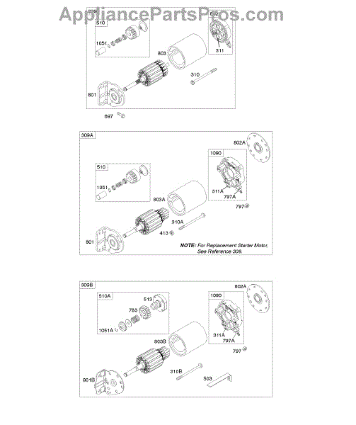 Parts for Briggs & Stratton 354445-0424-E1: Electric Starter #1 Parts