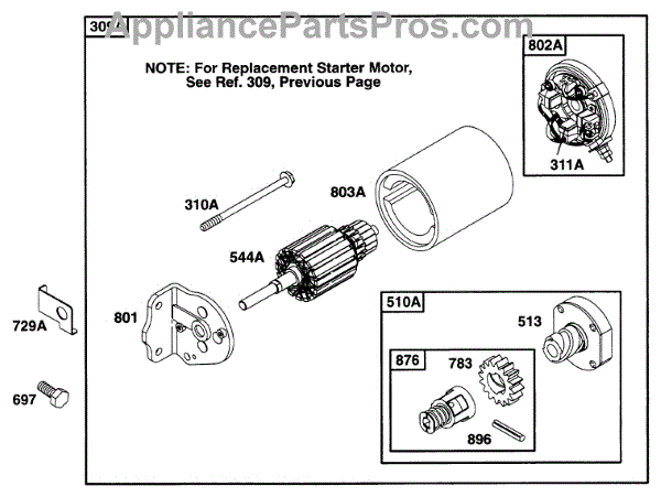 Parts for Briggs & Stratton 195432-1150-01: Electric Starter Parts