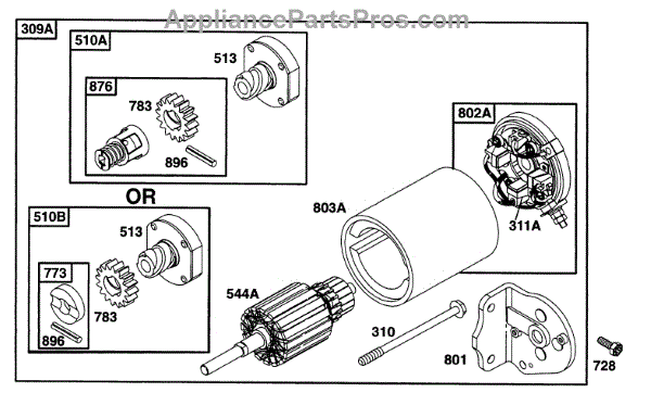 Parts for Briggs & Stratton 221452-0163-02: Electric Starter Parts