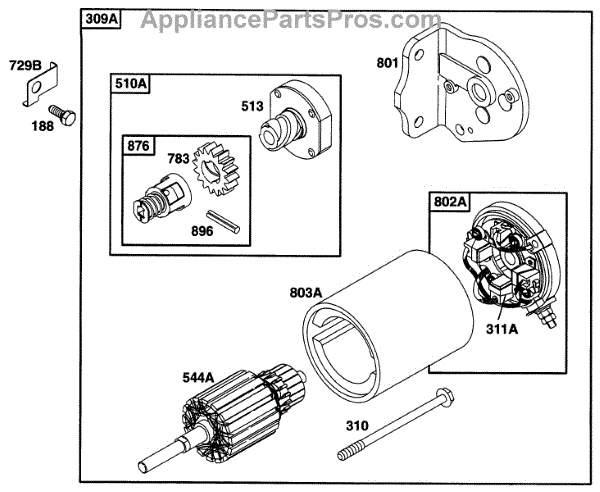 Parts for Briggs & Stratton 285707-0613-A1: Electric Starter Parts