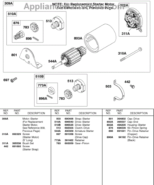 Parts for Briggs & Stratton 326431-0317-99: Electric Starter 2 Parts