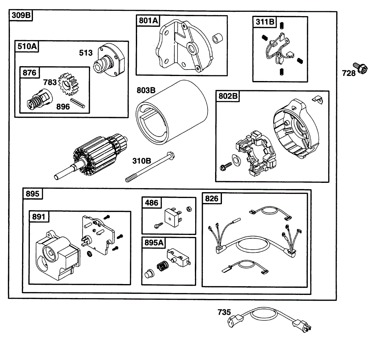 Parts for Briggs & Stratton 221435-0172-01: Electric Starter Parts
