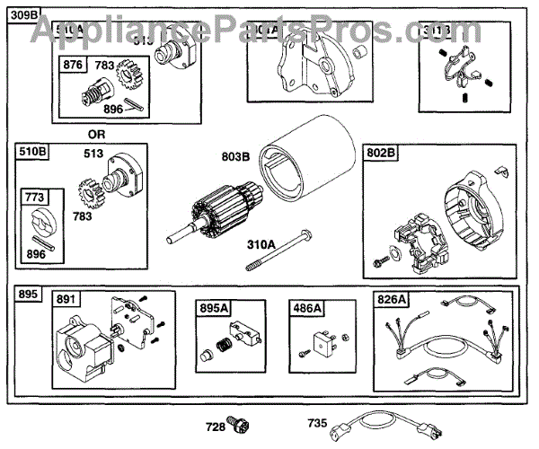 Parts for Briggs & Stratton 222413-0721-01: Electric Starter Parts
