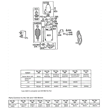Parts for Briggs & Stratton 130902-0247-99: Electric Starter And Chart Parts