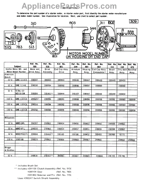 Parts for Briggs & Stratton 147401-0725-99: Electric Starter And Chart Parts