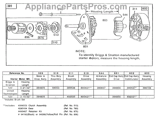 Parts for Briggs & Stratton 170707-6013-01: Electric Starter And Chart Parts