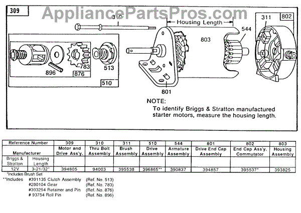 Parts for Briggs & Stratton 192707-0122-01: Electric Starter And Chart Parts