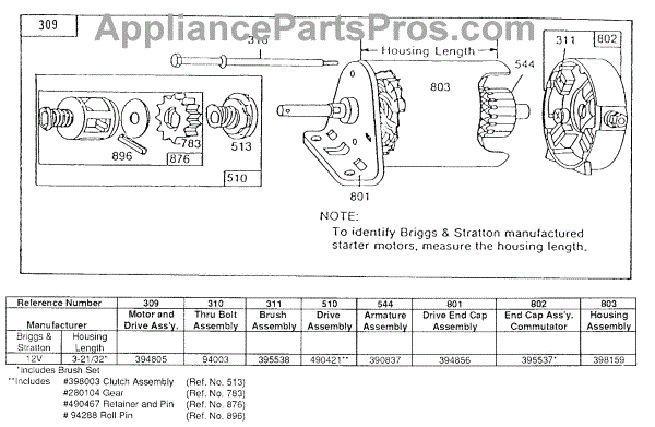 Parts for Briggs & Stratton 194415-0124-01: Electric Starter And Chart Parts