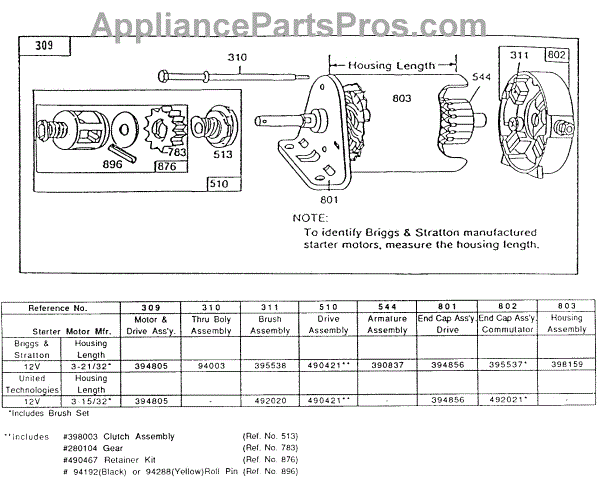 Parts for Briggs & Stratton 195422-1138-99: Electric Starter And Chart Parts