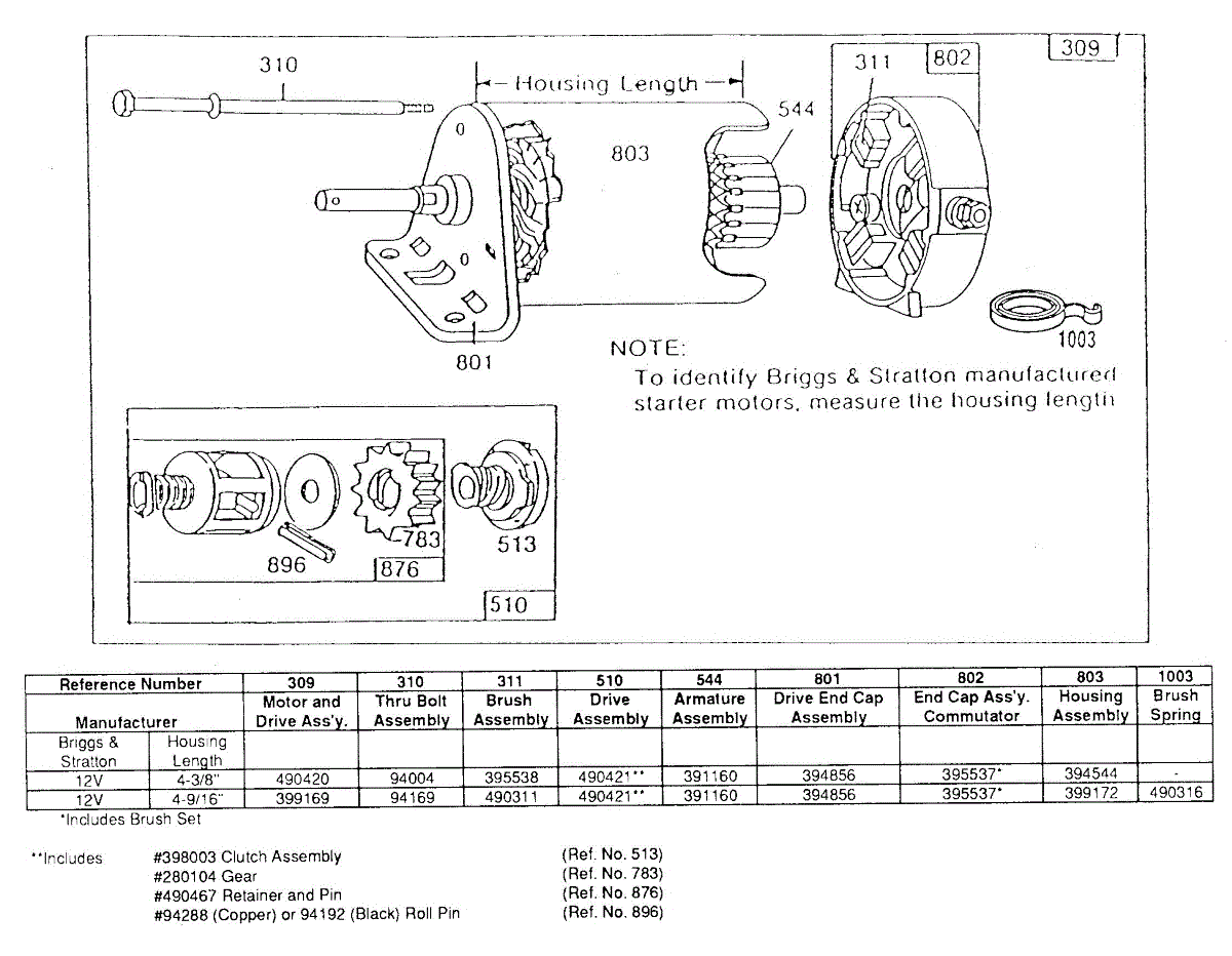 Parts for Briggs & Stratton 255427-0137-01: Electric Starter And Chart Parts