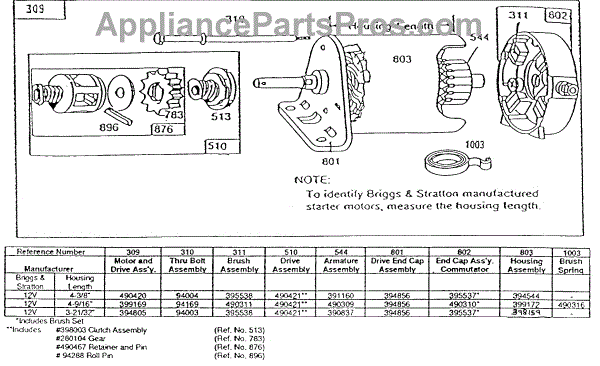 Parts for Briggs & Stratton 281707-0155-02: Electric Starter And Chart Parts