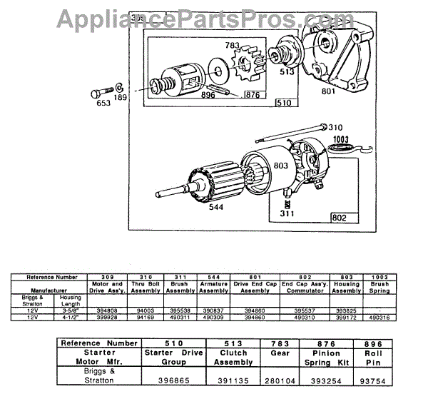 Parts for Briggs & Stratton 400437-0120-01: Electric Starter And Chart Parts