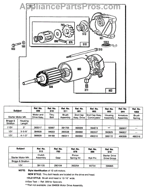 Parts for Briggs & Stratton 402707-0111-01: Electric Starter And Chart Parts