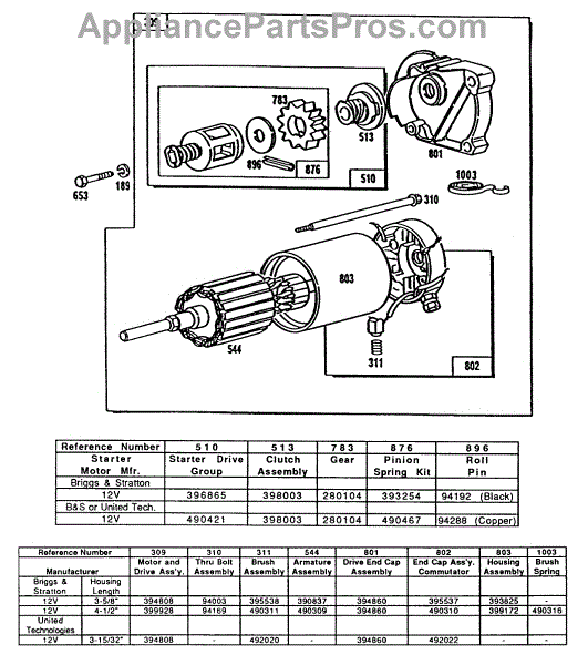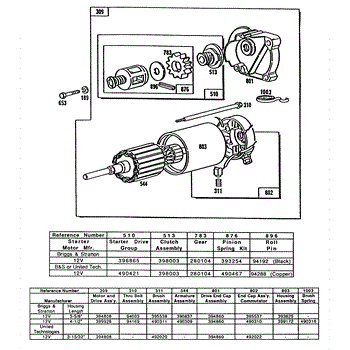 Parts for Briggs & Stratton 404437-0103-01: Electric Starter And Chart Parts
