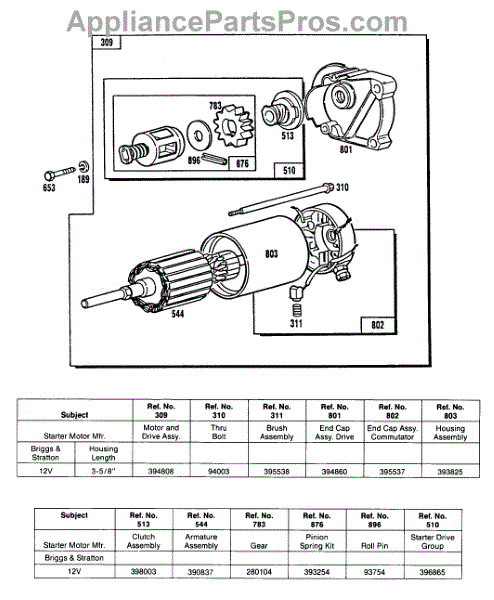 Parts for Briggs & Stratton 404707-0119-01: Electric Starter And Chart Parts