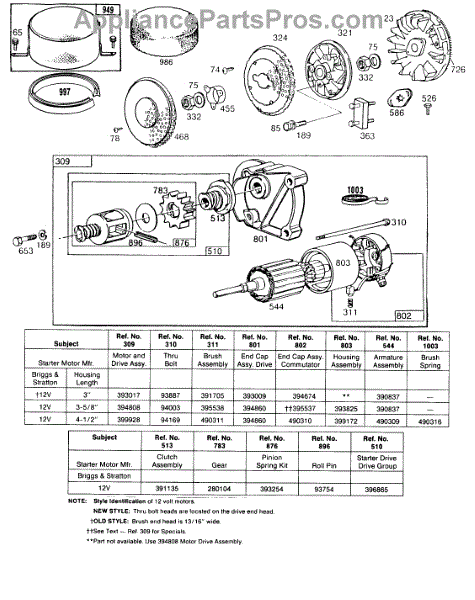 Parts for Briggs & Stratton 421707-0011-99: Electric Starter And Chart Parts