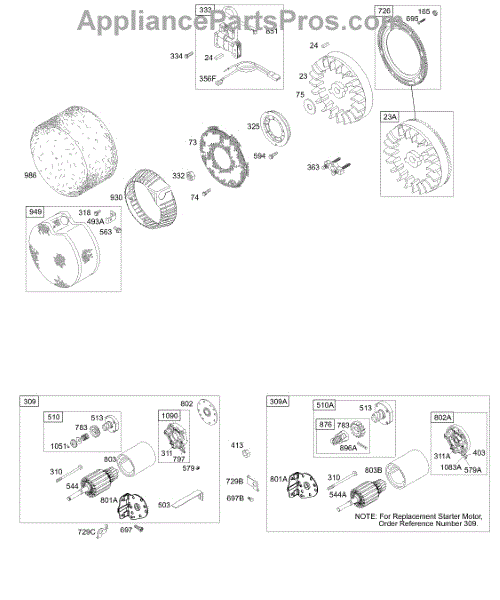Parts for Briggs & Stratton 196432-0132-01: Electric Starter, Flywheel, Armature Parts