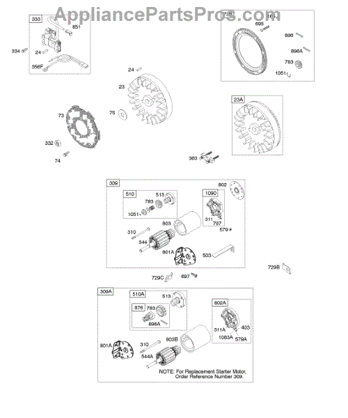 Parts for Briggs & Stratton 19E412-1134-E1: Electric Starter, Flywheel, Ignition Parts