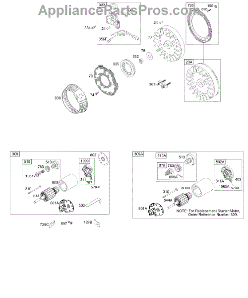 Parts for Briggs & Stratton 19F412-0136-01: Electric Starter, Flywheel, Armature Parts