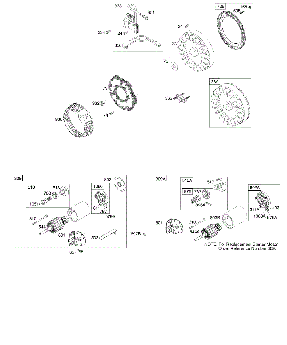 Parts for Briggs & Stratton 19G412-0129-01: Electric Starter, Flywheel Parts